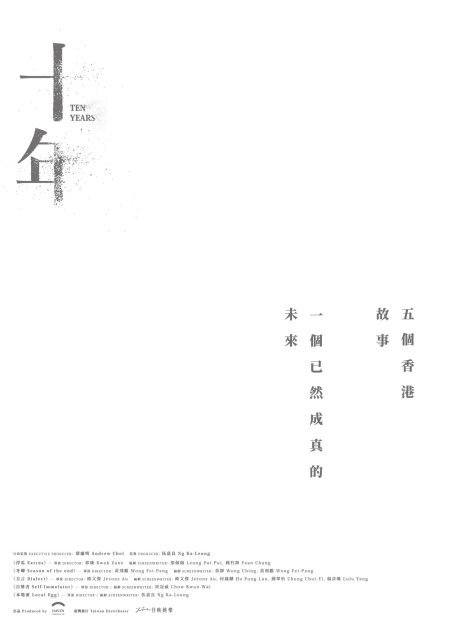 十年前,這部片只是寓言;十年後,現實已是血淚斑斑。五位膽大的新銳導演,拍下「可能成真」的香港。然而,沒有人想見到這樣的未來。